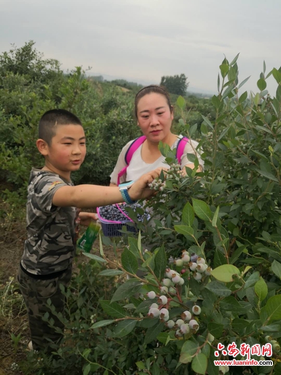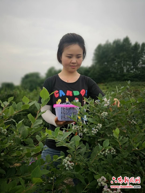 荒岗堆绿,蓝莓飘香。初夏时间,记者来到位于金安区施桥镇蓝莓种植基地,近千亩蓝莓基地里,前来采摘的游人往来其中,欢声笑语在绿色风景线上飘扬。