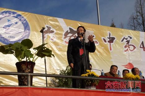 体育是力量的对抗,体育是智慧的较量,体育是美丽的展示,体育是青春的张扬。它传承的是人的成熟化,体现的是人的个性化、人格化,只有身临其境去感受,用心去体悟,用勇敢去尝试,用公平去竞争,方能真正知道体育的精彩内涵。在这里我要祝贺在场的各位运动员有这样的实践,特别是第一次参加六安二中运动会的同学们,祝贺你们!