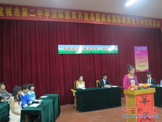 感恩节将至,2012年11月22—24日,六安二中国际班六名学生代表赴宣城二中参加了安徽美诚国际教育合作学校联谊会。来自全省七所学校的师生们共同参加了由宣城二中国际部主持的宣城文化介绍会,观摩了国际教育公开课,参加了英语演讲比赛和“环境保护之地球审判”模拟法庭等一系列活动。 此次联谊会,为同学们提供了展示自我的舞台,通过演讲、歌唱、舞蹈、乐器演奏、书画等表演,进一步彰显了学生主体地位。座谈会的召开,进一步推动了安徽美诚国际教育合作学校的交流与发展!
