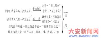 总结以上各点可知宝岛台湾富有稻米、水果、林木、矿产和渔盐,不愧是“祖国东南海上明珠”。