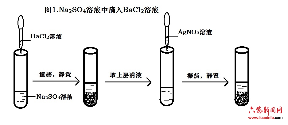 《离子反应》这节课中,课程内容较为抽象,所涉及的是微观层面的离子和离子之间的反应。而高考对这部分内容的要求是学习者能够用离子方程式等化学符号来表征离子反应。笔者为了让学生真正理解离子反应的实质,按照书本的内容,演示了Na2SO4溶液中滴入BaCl2溶液的实验,演示实验过程如图1所示。
