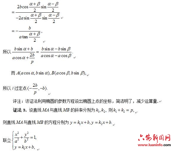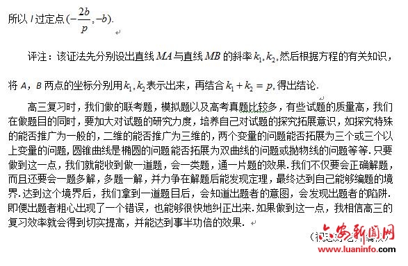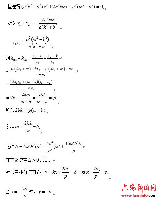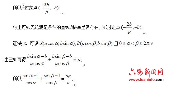 2017年高考全国Ⅰ卷理科第20题的一种推广