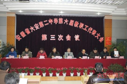 会议在雄壮的国歌声中拉开帷幕,市教育局党委委员,六安二中校长、党委书记,皖西中学董事长许秀旗作主题为“凝心聚力,务实创新,为实现六安二中跨越式发展而努力奋斗”的校长工作报告。六安二中工会常务副主席马骧作工会工作报告。六安二中副校长、党委委员,皖西中学校长王建安作皖西中学工作汇报。六安二中党委委员、党委办主任杨斌作提案征集情况汇报和议案修改情况说明。会议由六安二中副校长、纪委书记关世宏主持。