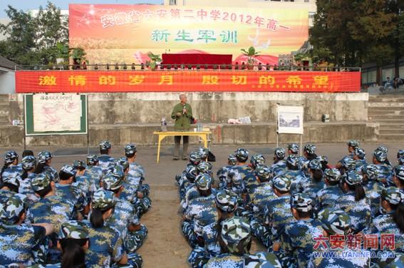 9月24日下午,革命老战士、年已耄耋的戴清老先生来到六安二中,为我校正在军训的高一年级新生做革命传统教育巡回报告。 戴老1947年投身革命,1948年加入中国共产党。战争时期,先后参加过淮海战役,渡江战役,上海战役,福夏战役,为新中国的成立做出了贡献。报告会上,戴老从近代中国的百年屈辱史说起,回顾往昔峥嵘岁月,并结合自己的战斗经历和英雄故事,为在场的师生展示出一幅幅波澜壮阔的历史画卷,激起大家强烈的民族自豪感和爱国激情。最后,他殷切希望同学们发扬革命传统,做学识渊博、品德高尚、意志坚强、全面发展的优秀人才,担负起历史赋予的使命,立大志、刻苦学习、发奋成才,担负起新的历史使命。