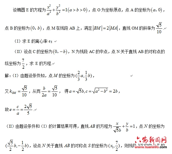 4.注意答题技巧。在数学的大题中,基本上都是2个小问,有时候做不出来第一问,或者题目给我们第一问是证明题,有结论,或者没有给出结论但是我们能猜测出第一问的结论,但是我们会做第二问,这时我们可以直接利用第一题的结论来做第二题。在我们遇到题目完全不会做的时候也不能完全不动笔,直接放弃,卷面空白,我们尽量去找题目考察我们的知识,用数学语言尽可能多地去翻译出题目条件。比如说20题的第一问求椭圆的离心率,只要有a2+b2=c2这个关系式出现就有1分。