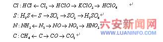 非金属部分(包括C、H、O、N、Si、S、Cl等):气态氢化物←单质→氧化物→氧化物对应水化物→相应的盐