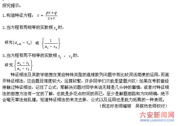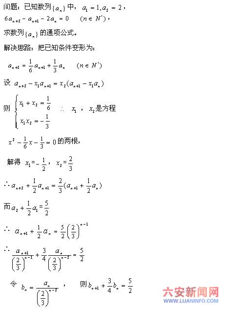 数列问题以其思维的发散性和解决问题的独特性,成为高考的热点。纵观近几年高考题,数列的考查已形成基本稳定的命题风格。或已知等差、等比数列模型进行基本量计算或求有关项的和,或给出递推关系求通项公式并结合数学归纳法、不等式等知识进行有关论证。其中尤以递推关系的处理为难点。这些问题的解决以构造等差、等比数列模型为关键点,不同的递推关系构造模型的方式不同,往往使学生感到复杂多变难以把握。本文旨在通过典例介绍一类递推关系的处理策略,并总结出求其通项公式的一种常用方法,以供同学们复习时参考。