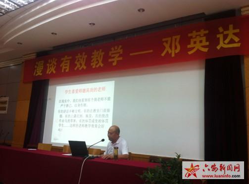 8月22日,安徽省教育学会副会长、原省教育厅基教处处长邓英达来我校分别作了有效教学、学校文化生态与教师发展两场专题讲座。