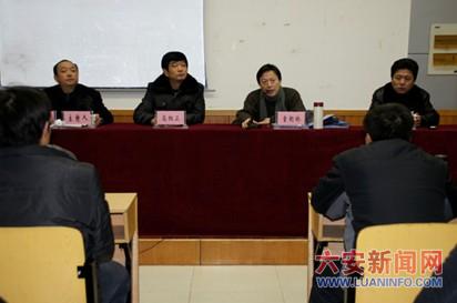 2011年高考对于六安二中至关重要,为了学校生存的需要,为了二中人活着的尊严,每位教职工必须理解“一荣俱荣,一损俱损”的含义。人生不能重来,高三没有彩排。高考联系着教师自己人生的追求,联系着千家万户,联系着数千学子的前途。高三老师不认真不行,仅认真不出成果不行,成果小了也不行,必须挑战自己的极限,力争抓好2011届高三最后冲刺。