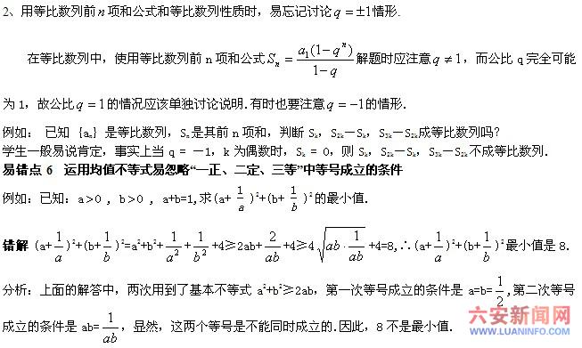 寒窗三载,做过的数学题不计其数,再过几周高三的同学就要踏进期盼已久的高考考场.打开书本,回顾反思,千万别忘了那些易错题,查一查那些易错点,该注意的是否都已注意到,如果还没有,请接受温馨提醒吧! 本文将新课标高中数学中最易出错的地方予以列出,使高三的同学在参加高考前多一份把握,也可以让高一高二的同学们在平常的学习中增强解题的严谨性.