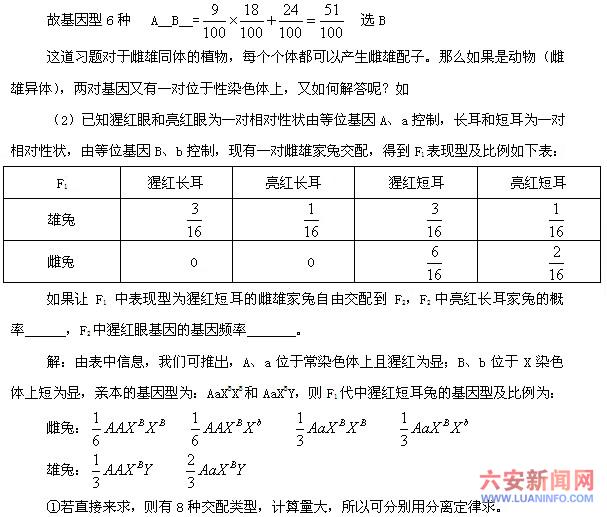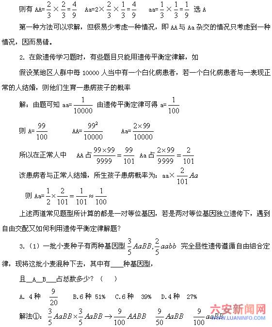 从上述四题中,我们不难发现,遗传平衡定律在解遗传学习题时给我们带来了便捷,如果我们能熟练掌握,在解自由交配这类习题时,我们可以准确、快捷地获得答案。