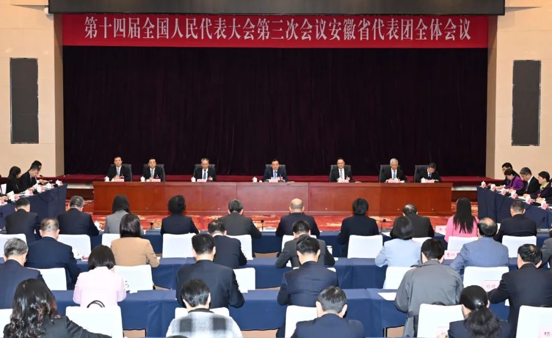 3月3日下午,出席第十四届全国人民代表大会第三次会议的安徽代表团在北京成立,并举行全体会议。省委书记、省人大常委会主任梁言顺主持会议并讲话。